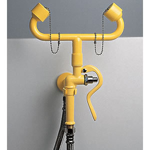 Emergency spray unit (eyes/body) with wall mounting twin heads